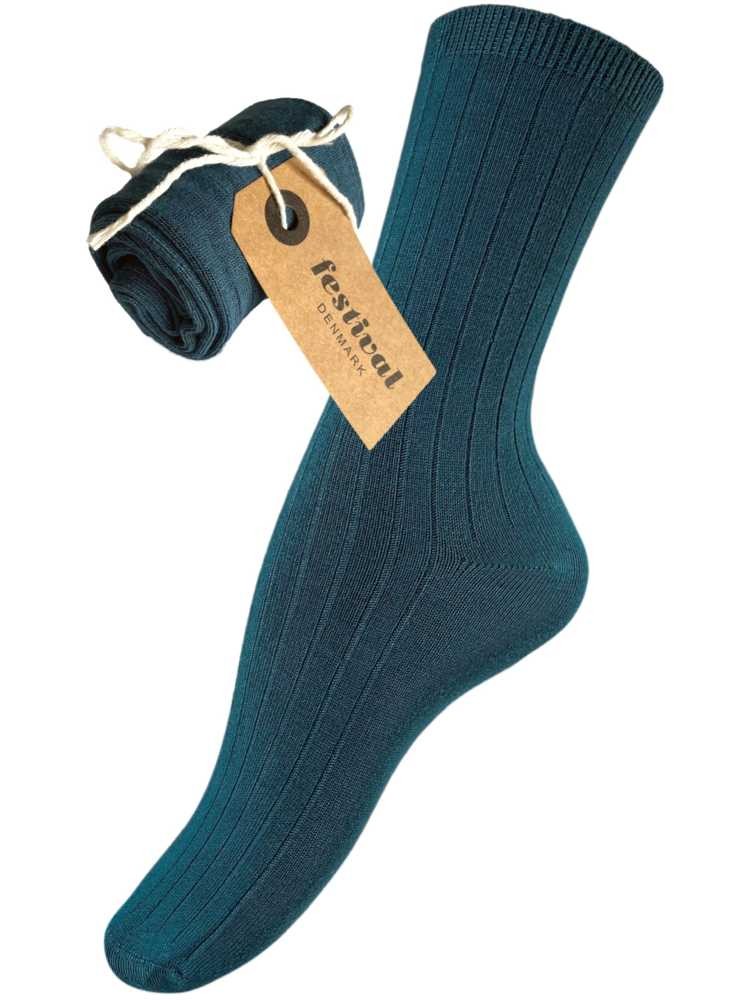 Bambustrumpor petrol blue från Festival med handkettlad tå