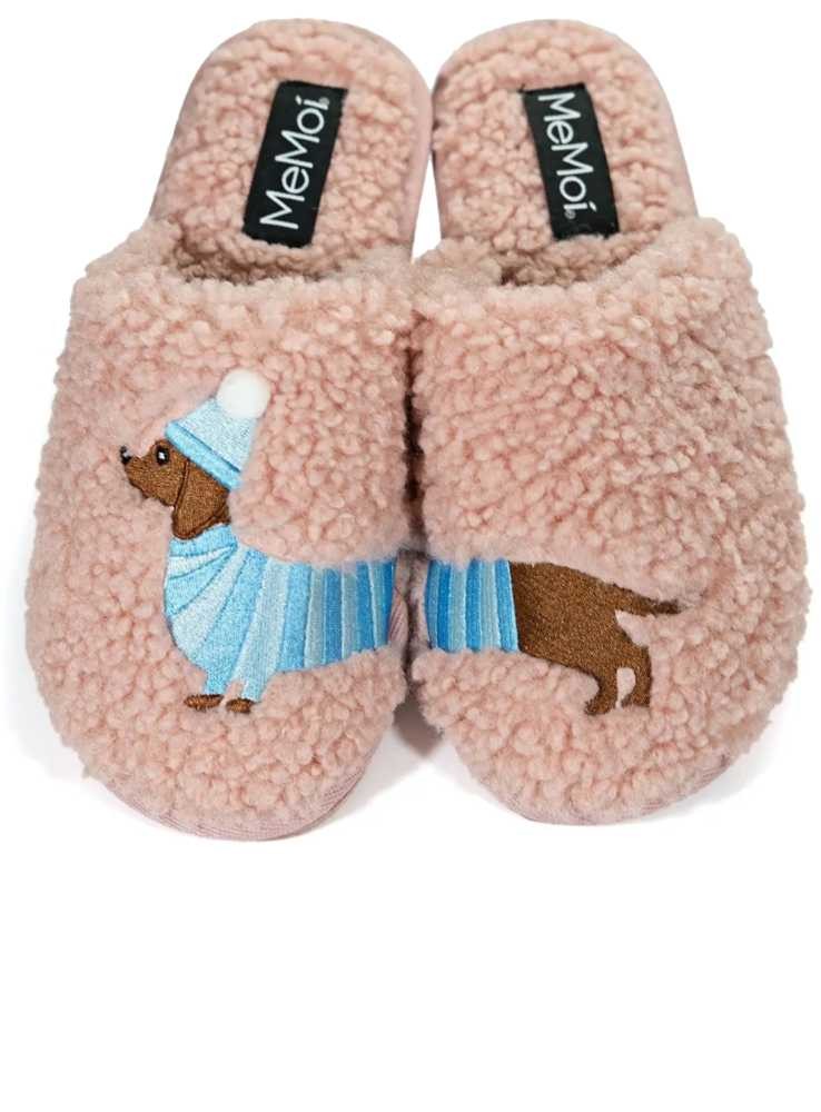 Tofflor filt med broderi Dachshund. S= 36/37, M=38/39, L=40/41