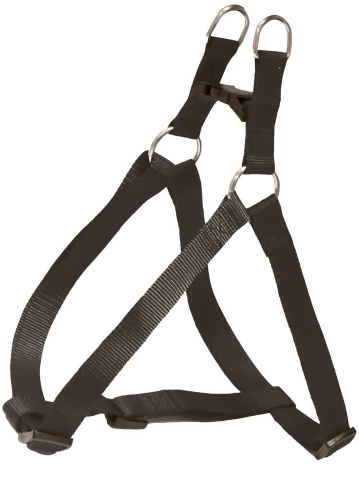 Hundsele justerbar från 57-88 cm, svart nylon. Praktisk och slitstark sele, som kan justeras från 57 cm till 88 cm runt bröstet. Bandet är 1,6 cm brett.