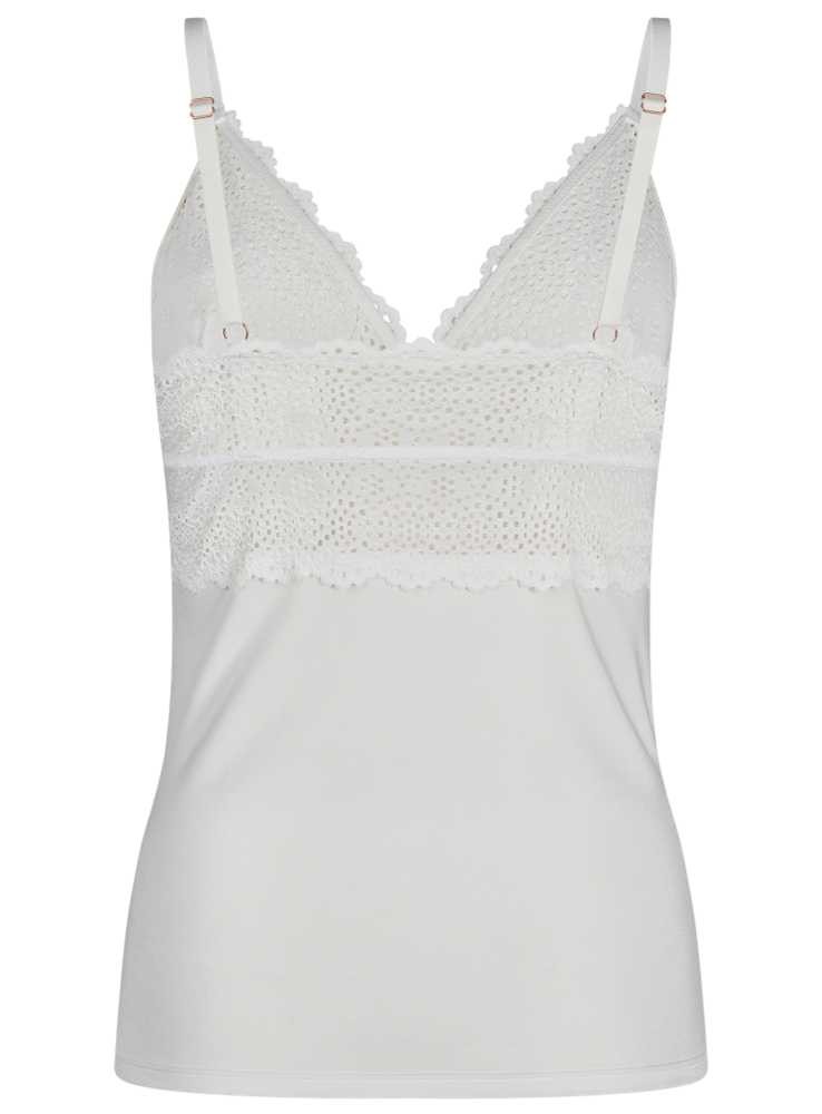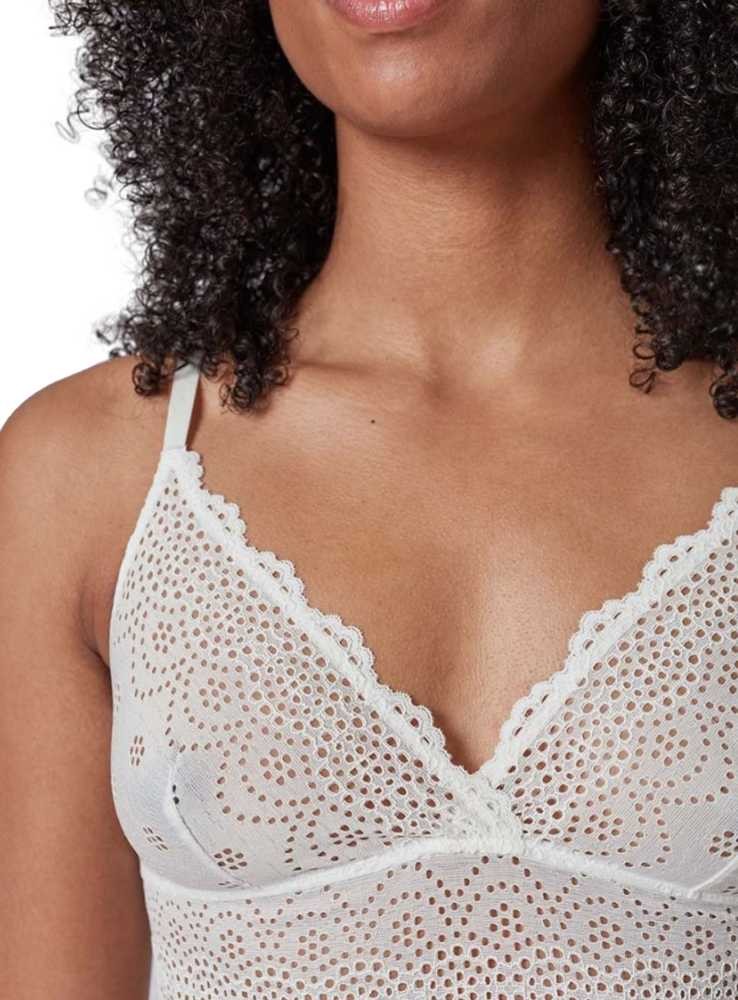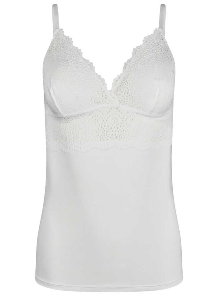 Spetslinne, mjuk bambu: 95% bambu och 5% elastan, spets: 87% polyamid 13% elastan. Ultra feminin undertröja med spets. Offwhite.